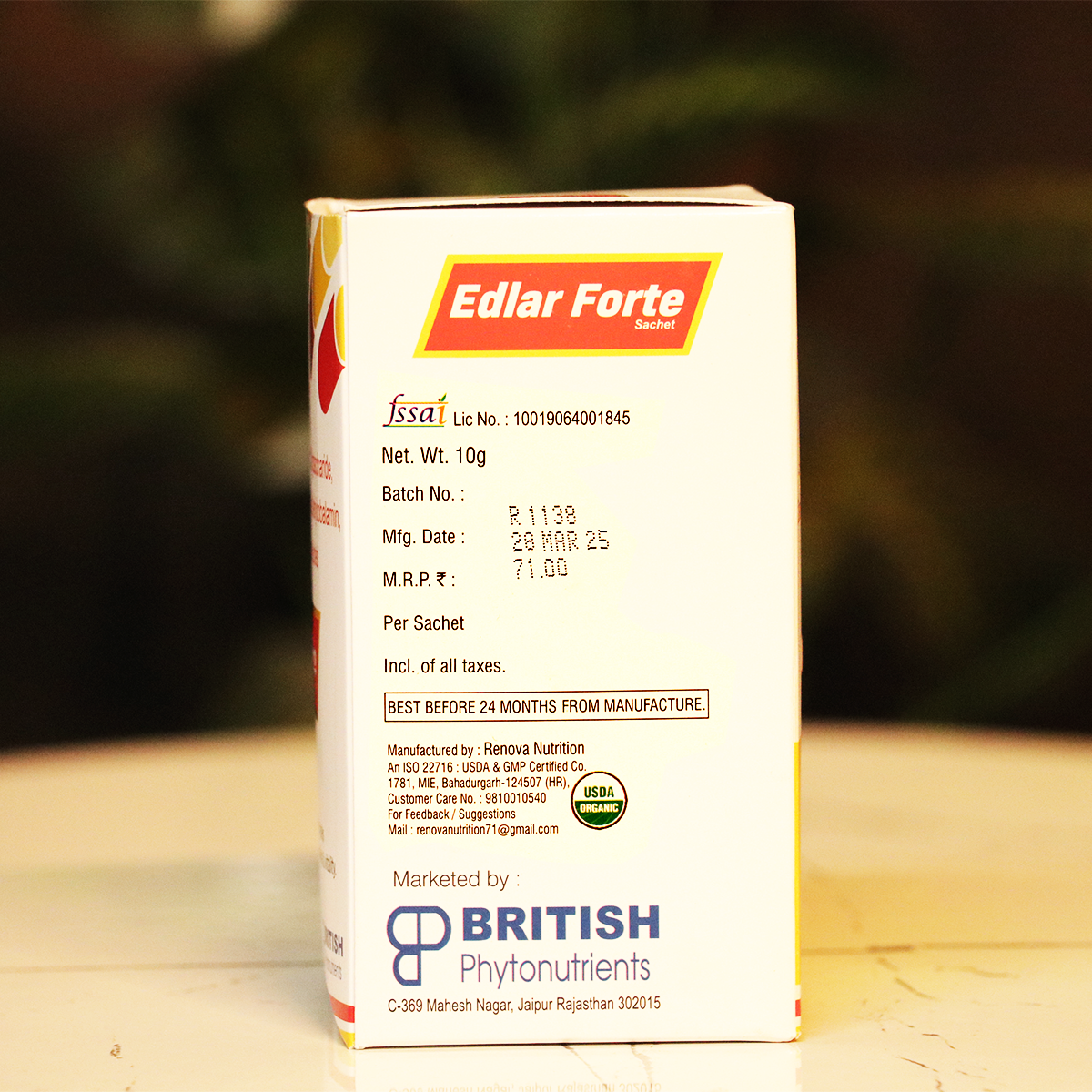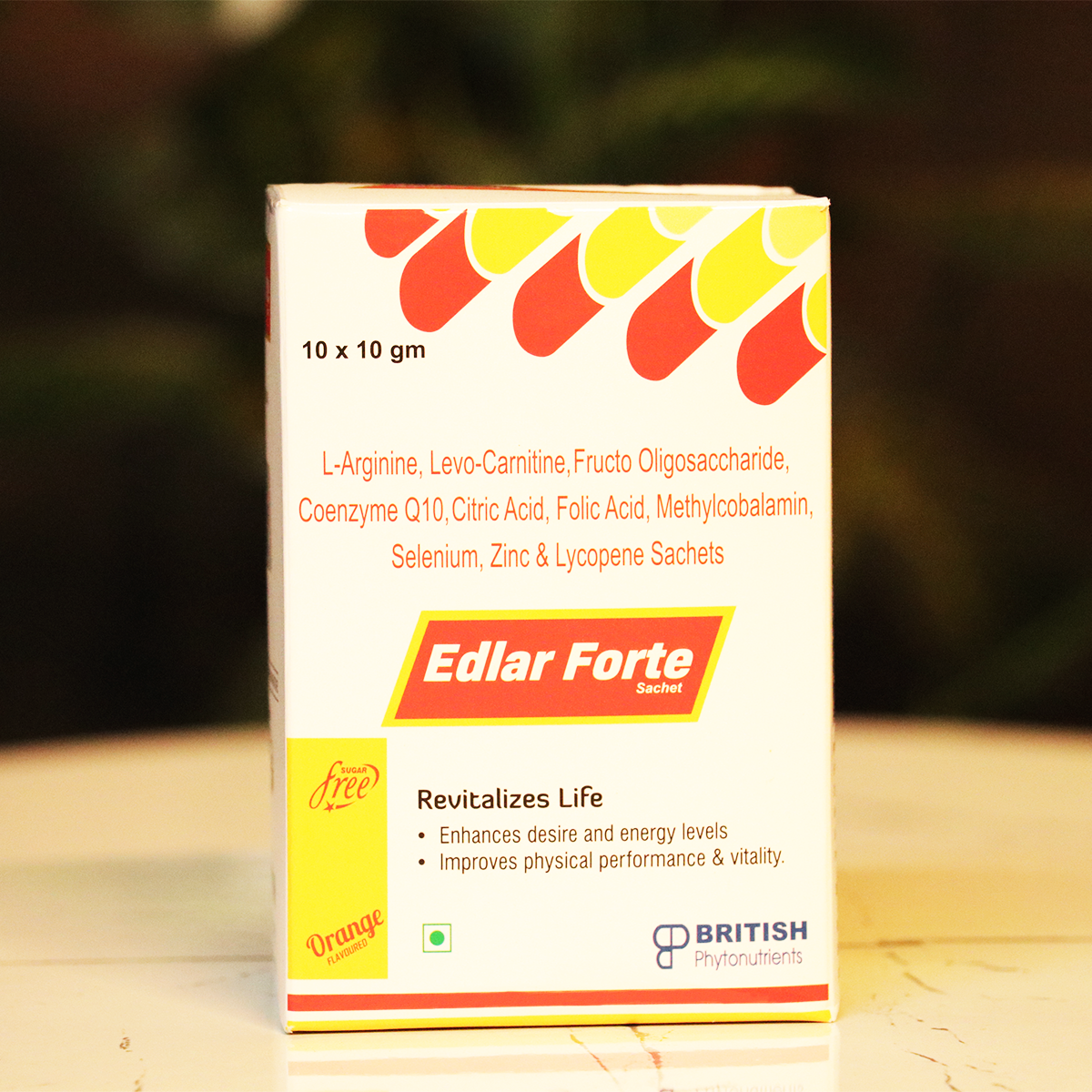 Edlar Forte Sachet is a nutritional health supplement specially formulated to boost stamina, energy, and male vitality. Each orange-flavored sachet contains a powerful blend of L-Arginine, L-Carnitine, Coenzyme Q10, Zinc, Lycopene, Folic Acid, and Vitamin B12, which work together to improve blood circulation, support reproductive health, and enhance physical performance. Ideal for men experiencing fatigue or low energy, Edlar Forte helps improve overall strength and endurance. Mix one sachet with water daily, or as directed by your physician.