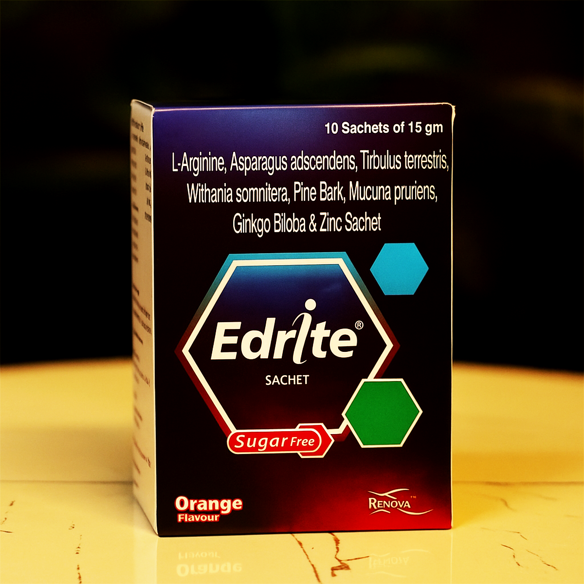 Edrite Sachet is a health supplement designed to support male vitality, stamina, and reproductive wellness. Each orange-flavored sachet contains a powerful blend of L-Arginine, Safed Musli, Tribulus Terrestris, Ashwagandha, Pine Bark Extract, Mucuna Pruriens, Ginkgo Biloba, and Zinc—ingredients known to boost blood circulation, improve energy levels, and enhance performance. Ideal for men experiencing fatigue or low energy, Edrite helps promote strength and endurance naturally. Mix one sachet with water daily or as directed by your healthcare professional. Each pack contains 10 sachets.