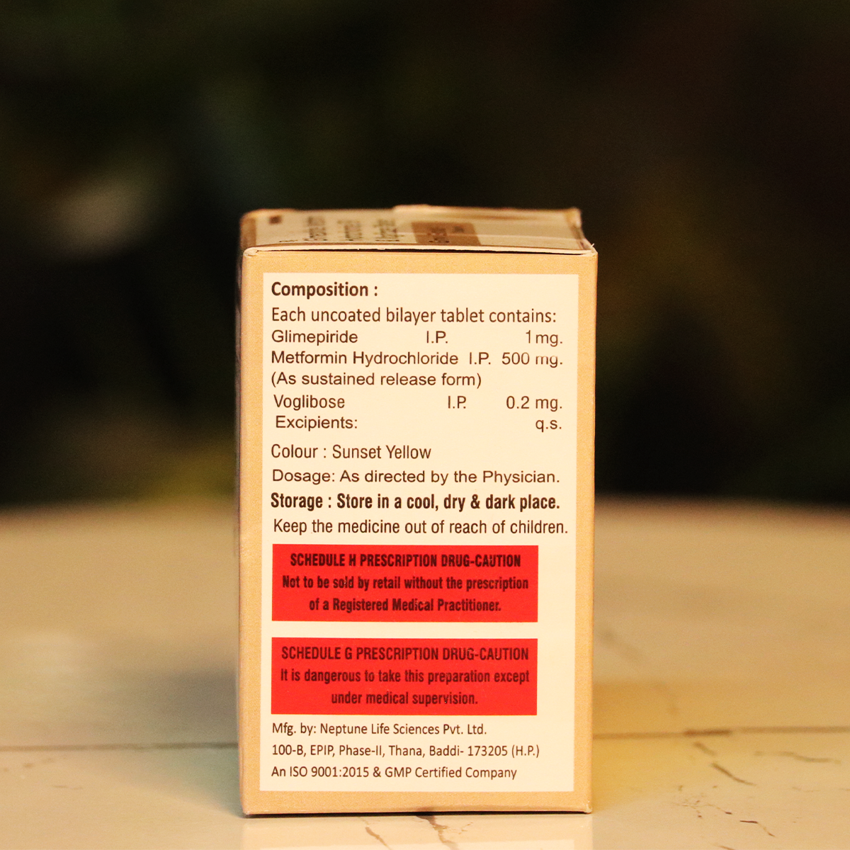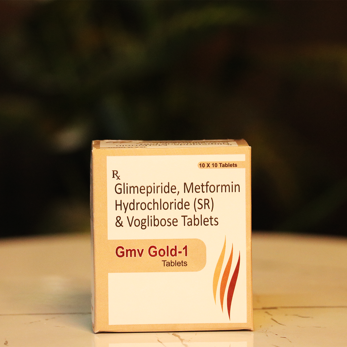 GMV Gold-1 Tablet is a powerful anti-diabetic medicine designed to manage Type 2 Diabetes Mellitus effectively. It is a combination of three key ingredients: Glimepiride, Metformin, and Voglibose, which work together to control blood sugar levels throughout the day.
