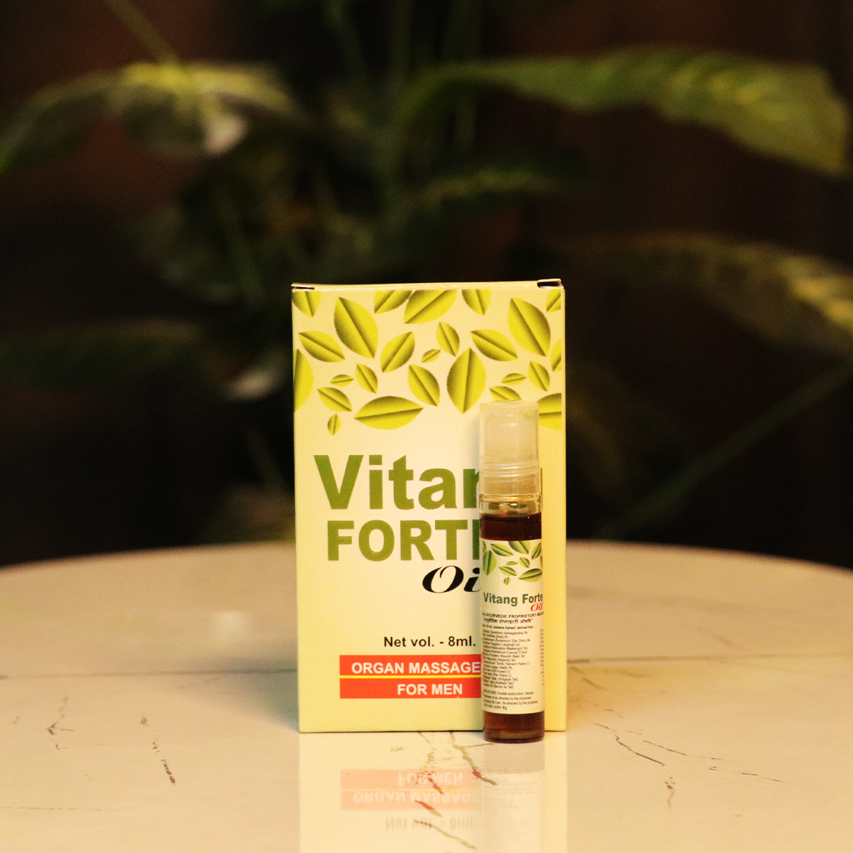 Vitang Forte Oil is a premium Ayurvedic massage oil specially formulated to enhance male vitality, performance, and blood circulation. Infused with time-tested herbs such as Ashwagandha, Shilajit, Kapikacchu, and Jaiphal, this oil promotes strength and stamina while improving erectile firmness naturally and safely.